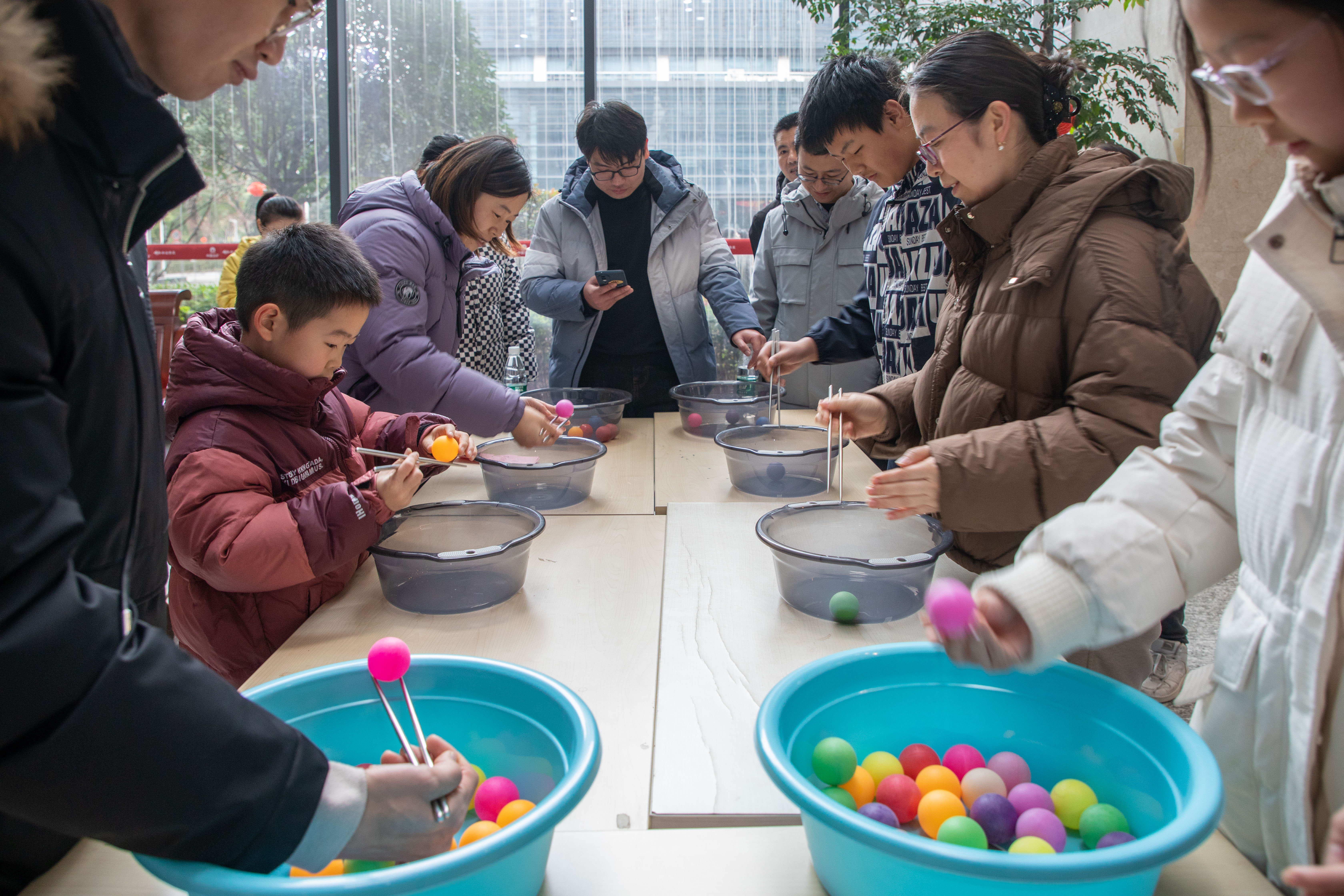 致辭完畢后,迎春活動(dòng)正式開(kāi)啟。此次文體活動(dòng)分設南京與馬鞍山兩個(gè)會(huì )場(chǎng),共設置了14個(gè)游戲:投壺、套圈,精準中靶,老少咸宜;乒乓傳球、貪吃蛇、旱地龍舟,團隊合作,趣味十足;丟沙包、跳格子,重溫兒時(shí)歡樂(lè )時(shí)光;撲克24點(diǎn),益智益腦,樂(lè )在其中。參與者在游玩任意三個(gè)游戲后,可領(lǐng)取蛇年福字對聯(lián),收獲“?!睔?,滿(mǎn)堂喜悅祥和中,大人孩子齊上陣,樂(lè )享一年一度的美好時(shí)光。