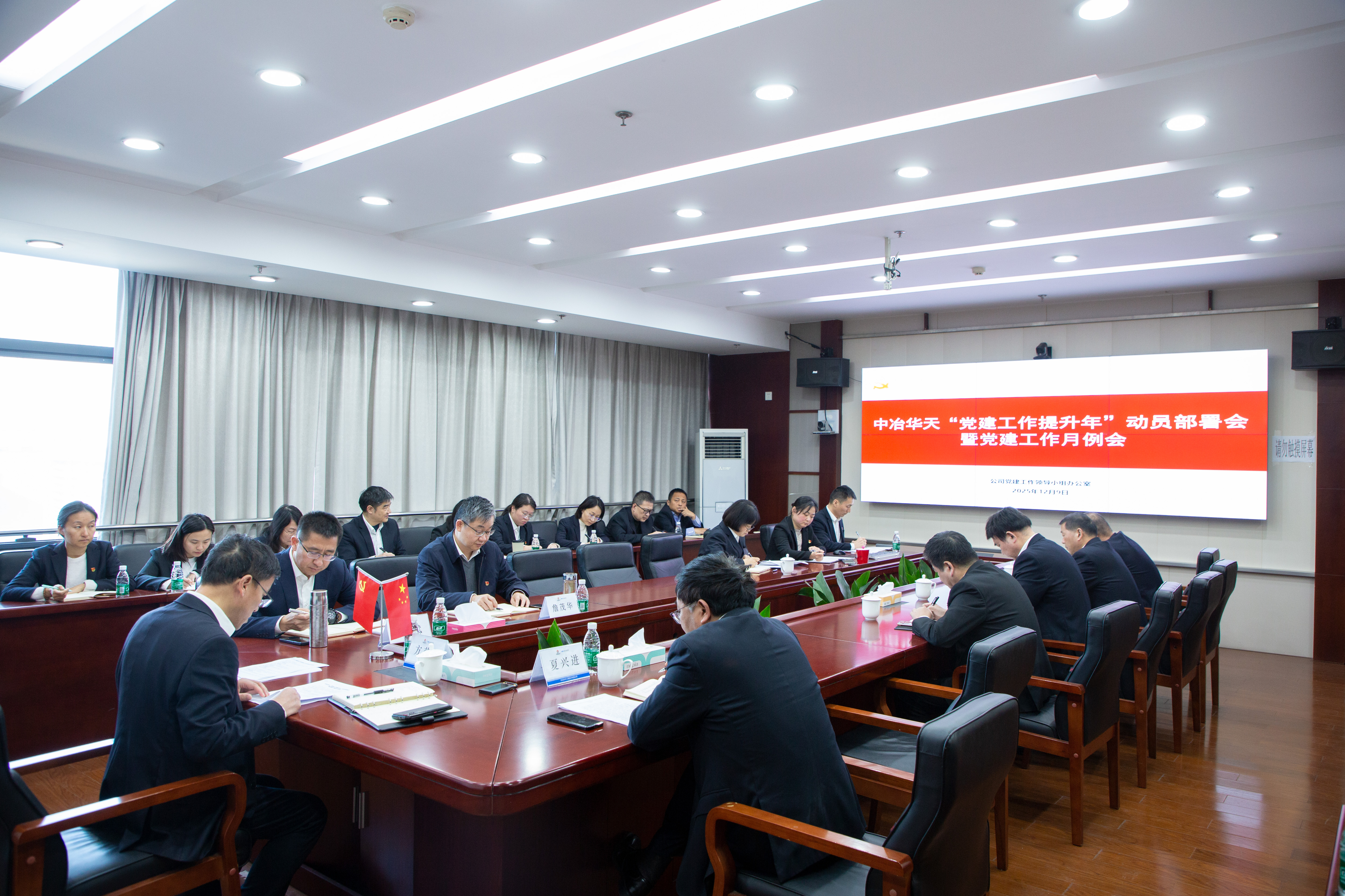 為貫徹落實黨的二十屆四中全會精神,再學(xué)習(xí)再領(lǐng)會習(xí)近平總書記關(guān)于黨的建設(shè)的重要思想,提升基層黨建工作質(zhì)量,12月9日,中冶華天召開“黨建工作提升年”動員部署會暨黨建工作月例會,集中學(xué)習(xí)了習(xí)近平總書記關(guān)于黨的建設(shè)的重要思想,傳達貫徹集團公司“黨建工作提升年”行動。公司黨委書記、董事長方榮華主持會議并講話。